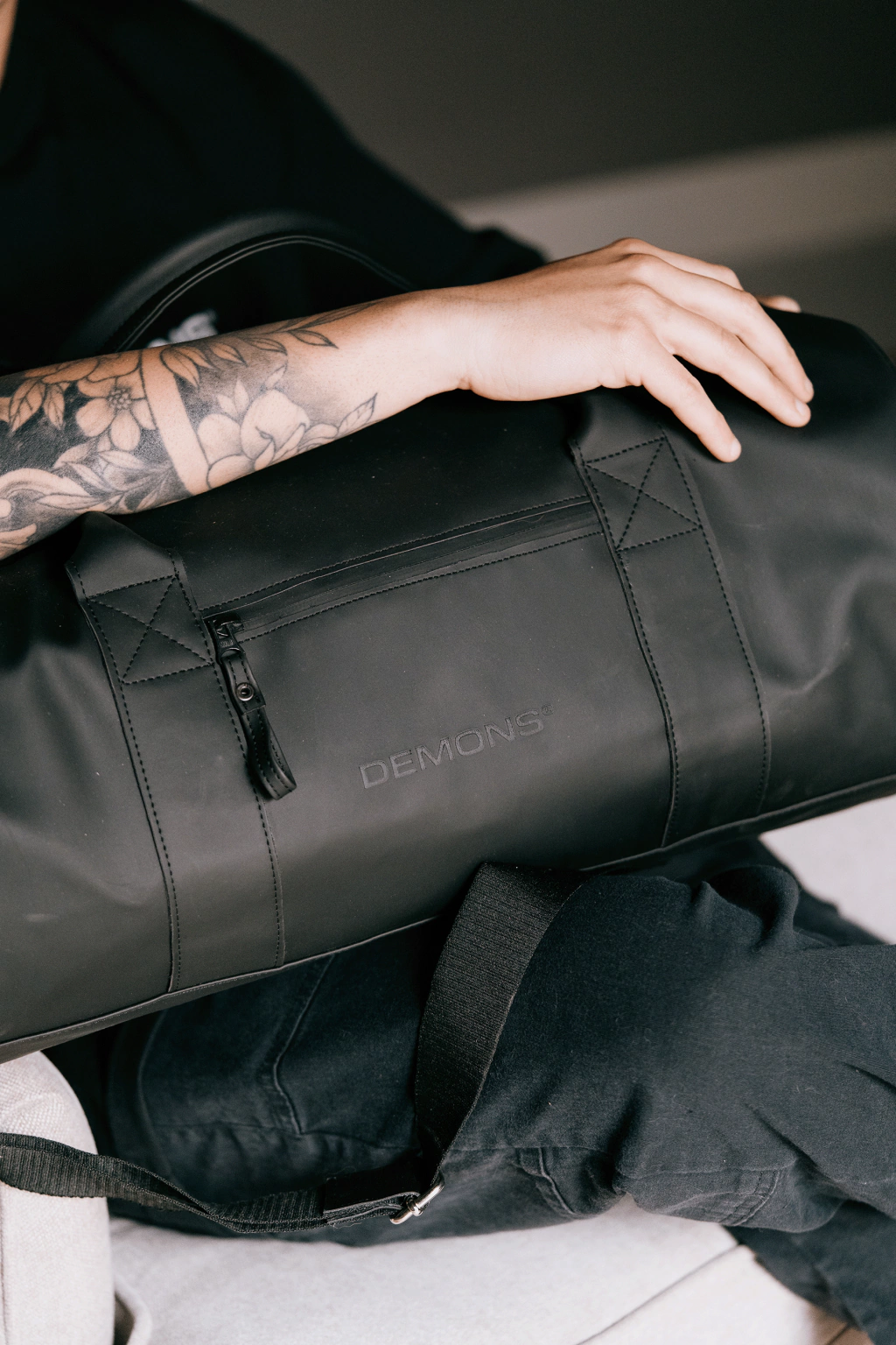 Elegante y funcional, este bolso está confeccionado en eco-cuero engomado, ofreciendo un acabado sofisticado y resistente. Su interior está forrado con tela negra impermeable, garantizando protección y durabilidad.